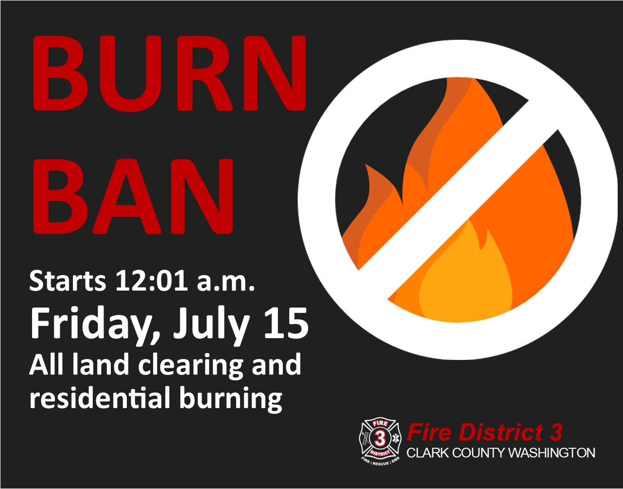 Clark County implements warm weather burn ban beginning July 15